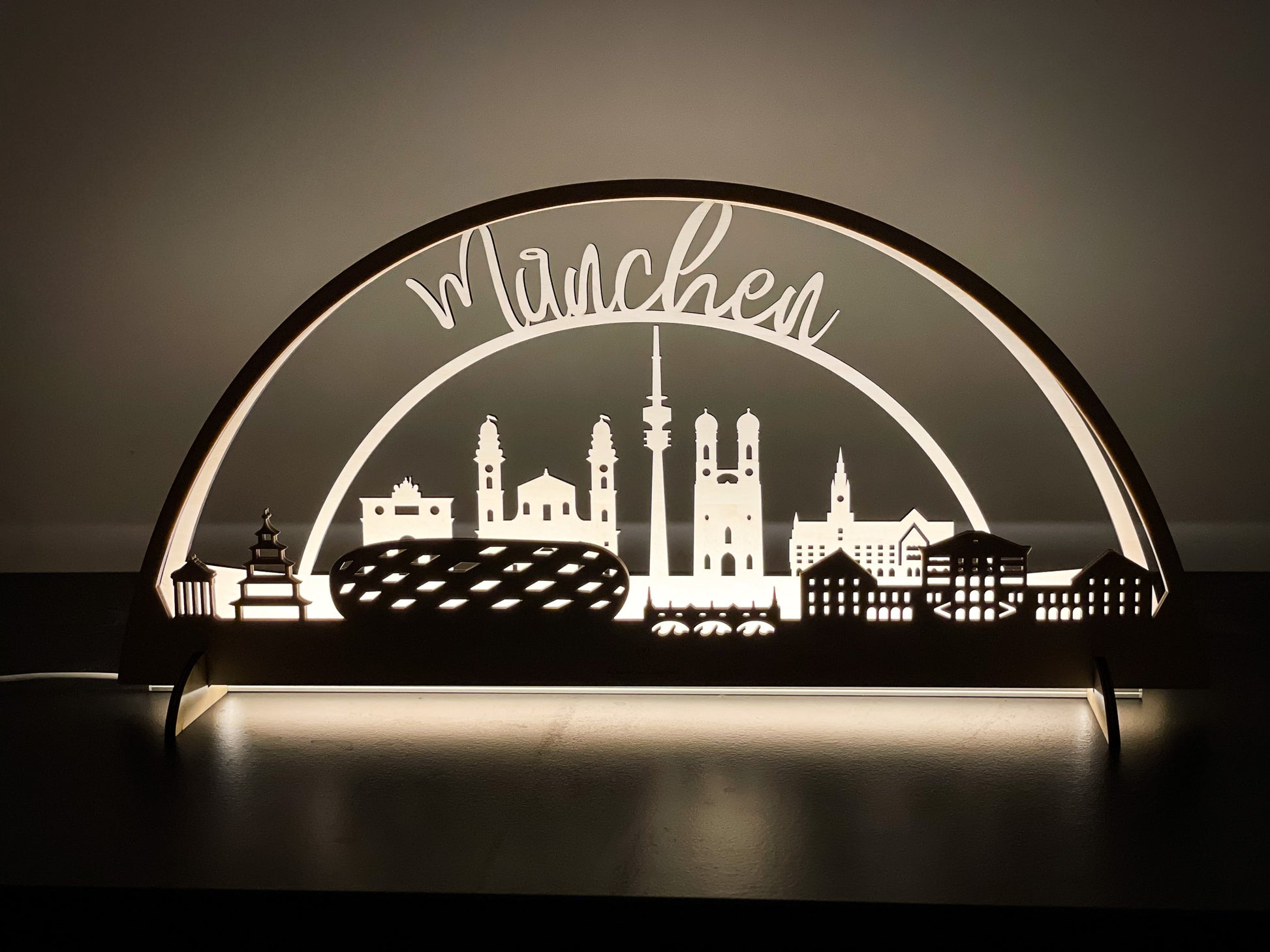 Inkl. dimmbarer LED-Beleuchtung mit Netzstecker (auch mit Powerbank nutzbar) und graviertem Logo.